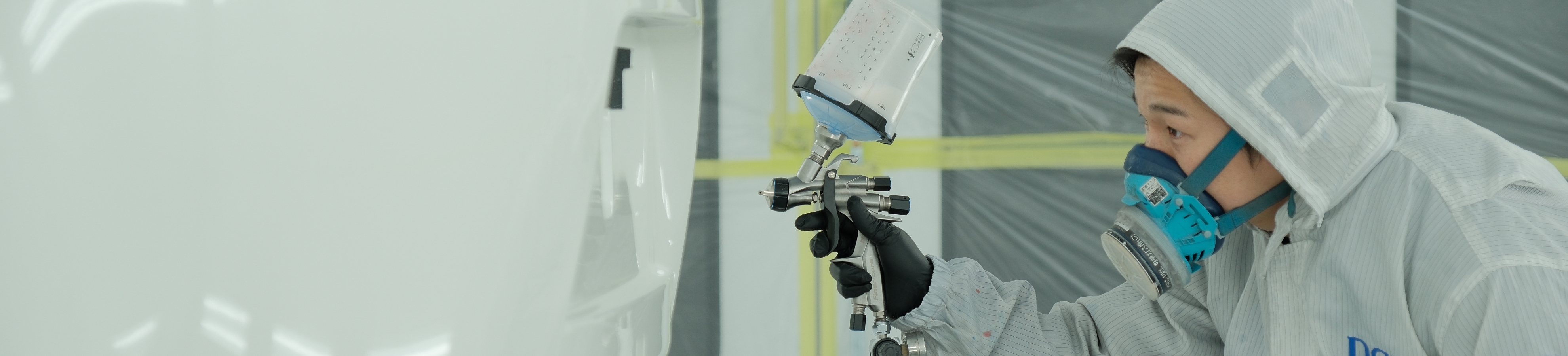 当社の採用する最新型の圧送式温風塗装ブースは、塗装時に付着するゴミやホコリの付着を最小限に抑えられます。