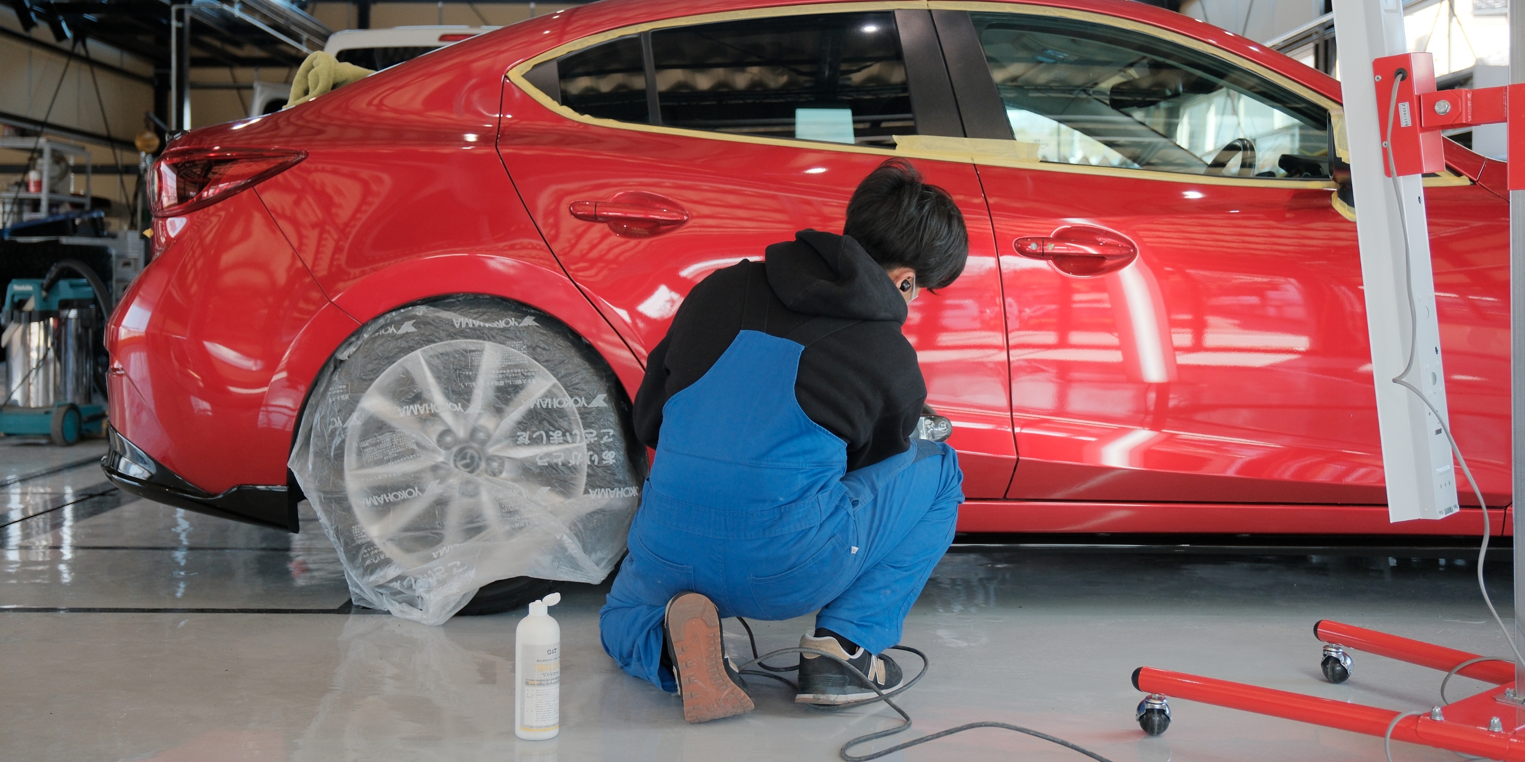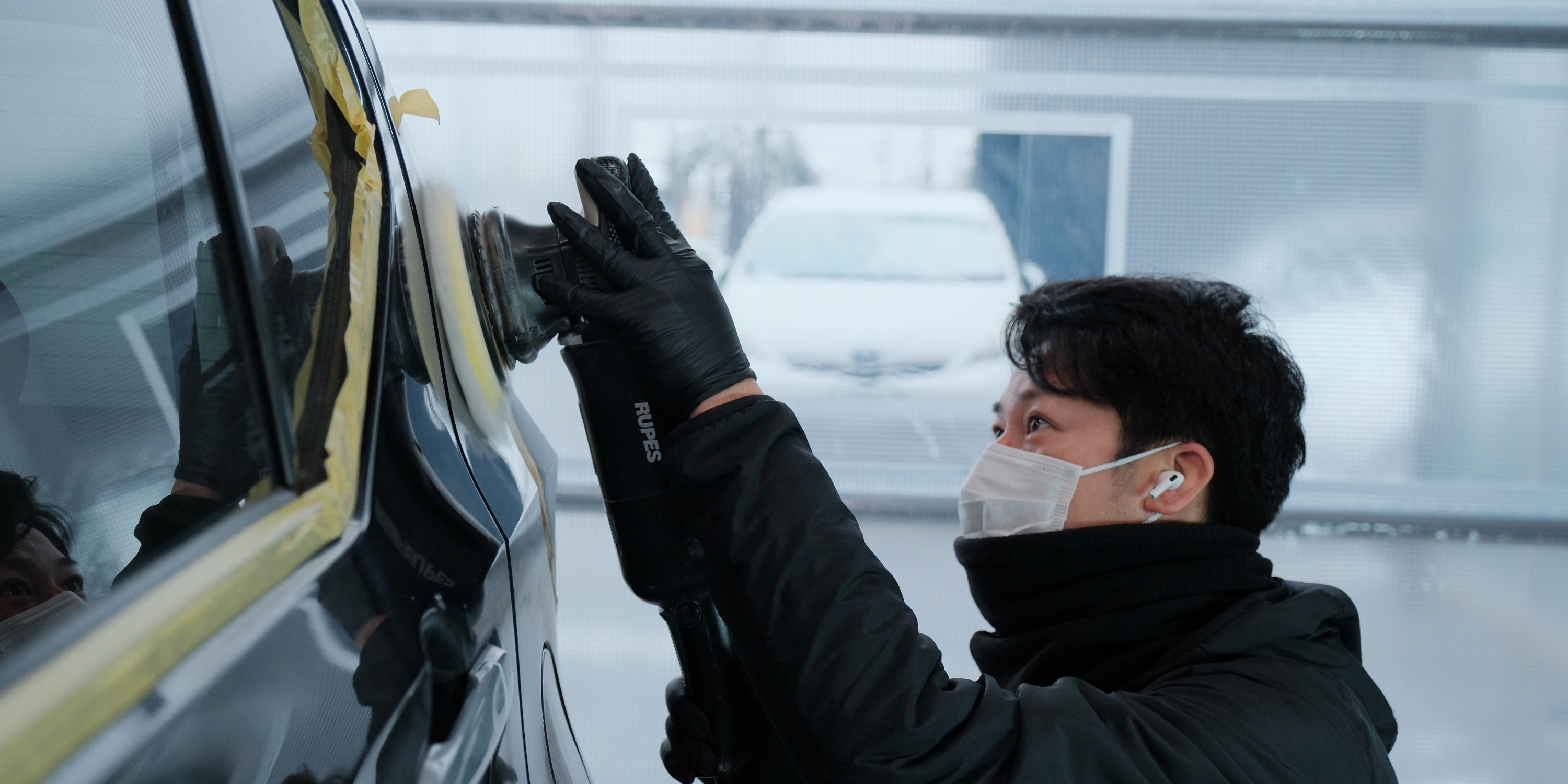 カーコーティングの仕上がりの輝きや持ちの良さは、コーティング前の下地づくりが重要となります。 ボディについたキズを見極め、ポリッシャーで磨くことでコーティング剤をより密着させることができ、良好な持ちと深い艶を実現します。
